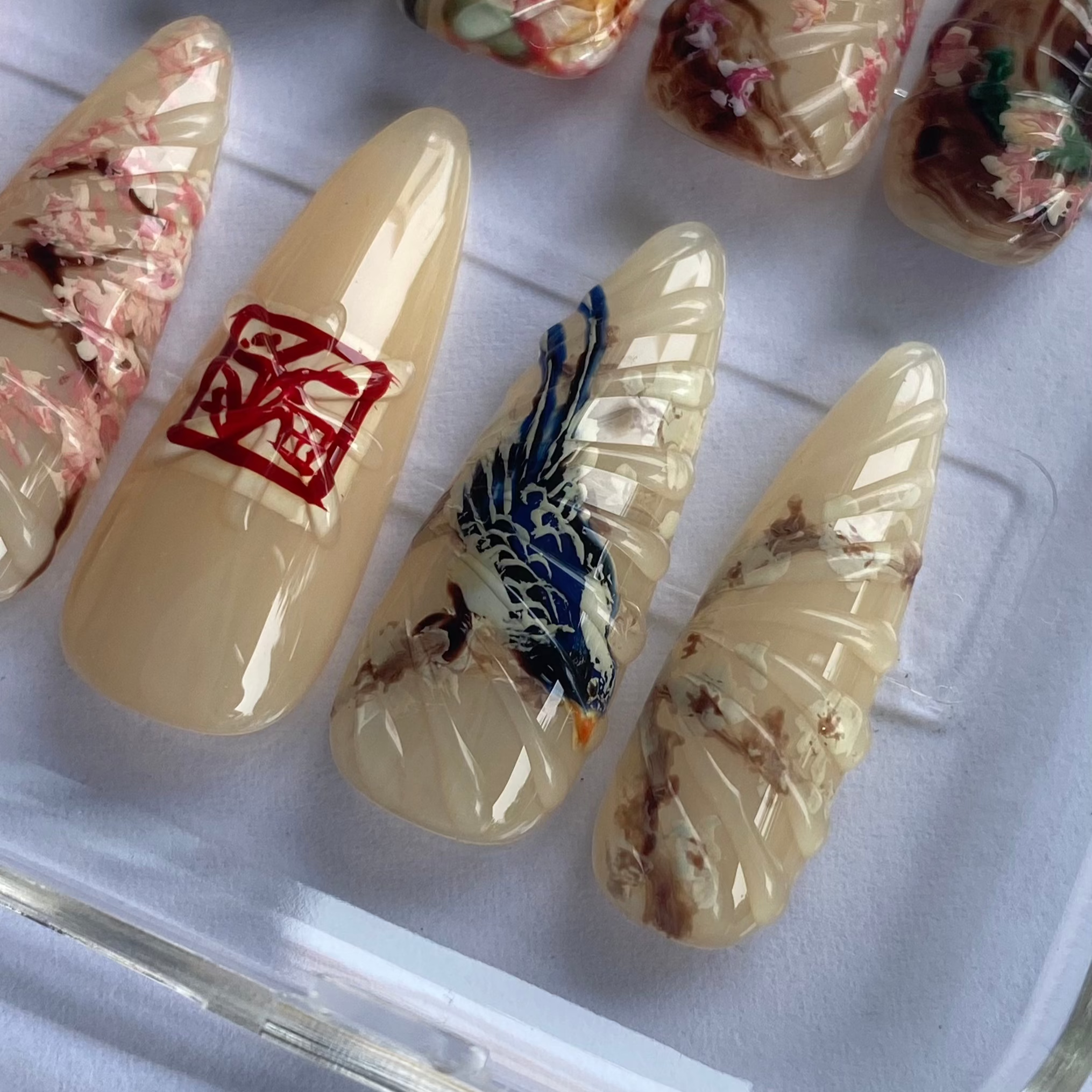 Beyond being reusable, Kurono press-on's emphasize artistry and intricacy. Each set is handcrafted with care, offering a level of customization and detail that sets us apart from mass-produced brands. Our designs cater to your individual style, ensuring a personalized, luxury experience.